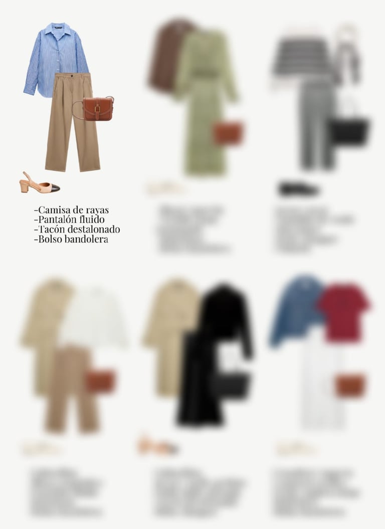 -Tener unas fórmulas de looks claras y replicables con la ropa que ya tienes en tu armario para no tener que perder el tiempo cada día pensando qué ponerte.
